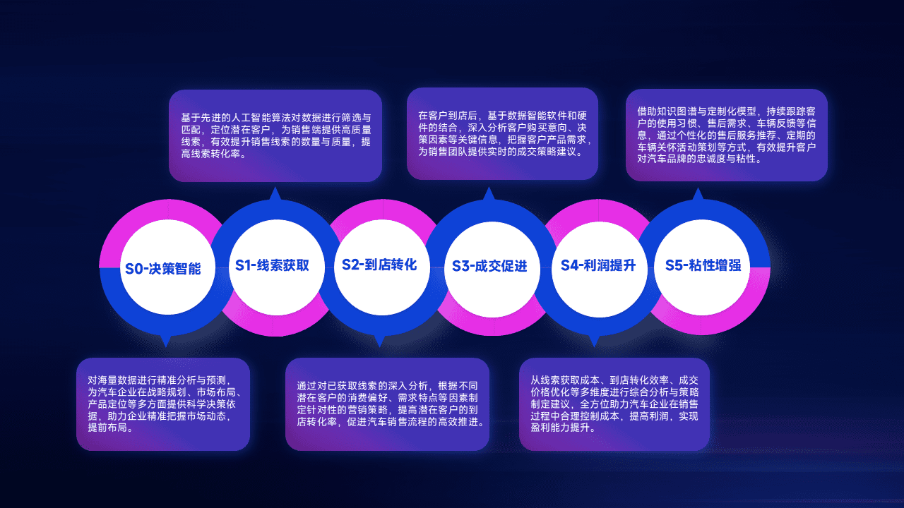 通过拓宽潜在客户来源、、、优化线索分配并提高到店转化率,,,,以增强销售效率。。。。同时,,利用线索数据不断优化分析模型,,,有效提升转化率,,扩大营销影响力。。。。